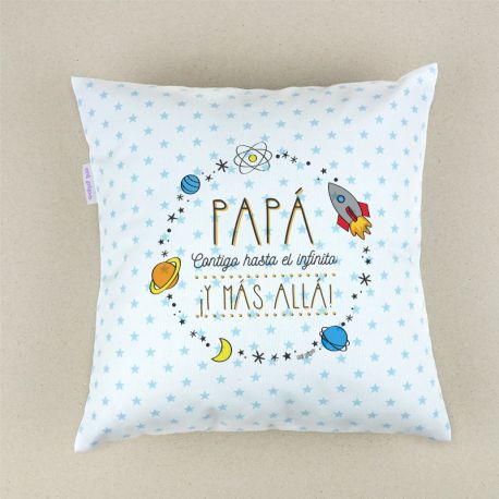 Cojín cuadrado piqué Papá contigo hasta el Infinito ¡y más allá! Planetas