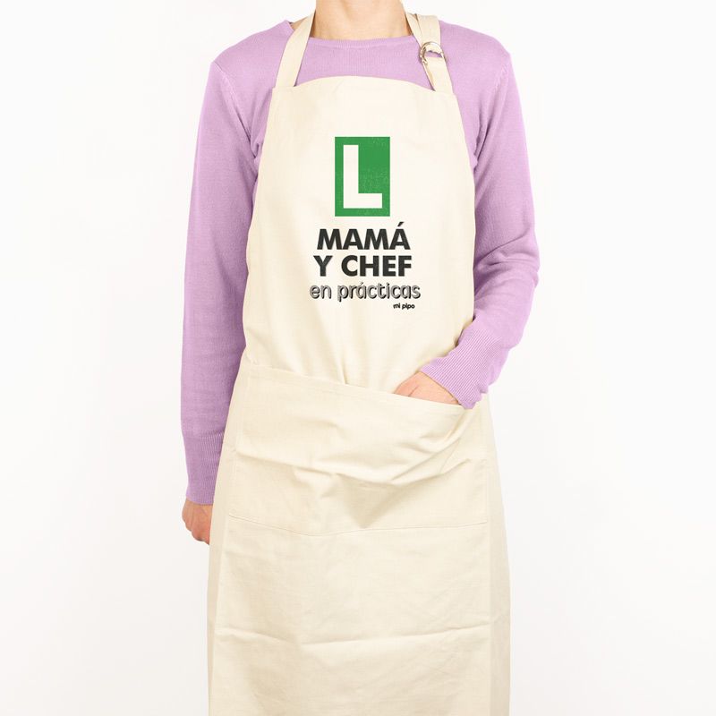 Delantal Algodón Premium Divertido Mamá y Chef en Prácticas