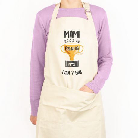 Delantal Algodón Premium Personalizado Mami eres la Cocinera Nº1 (nombres)