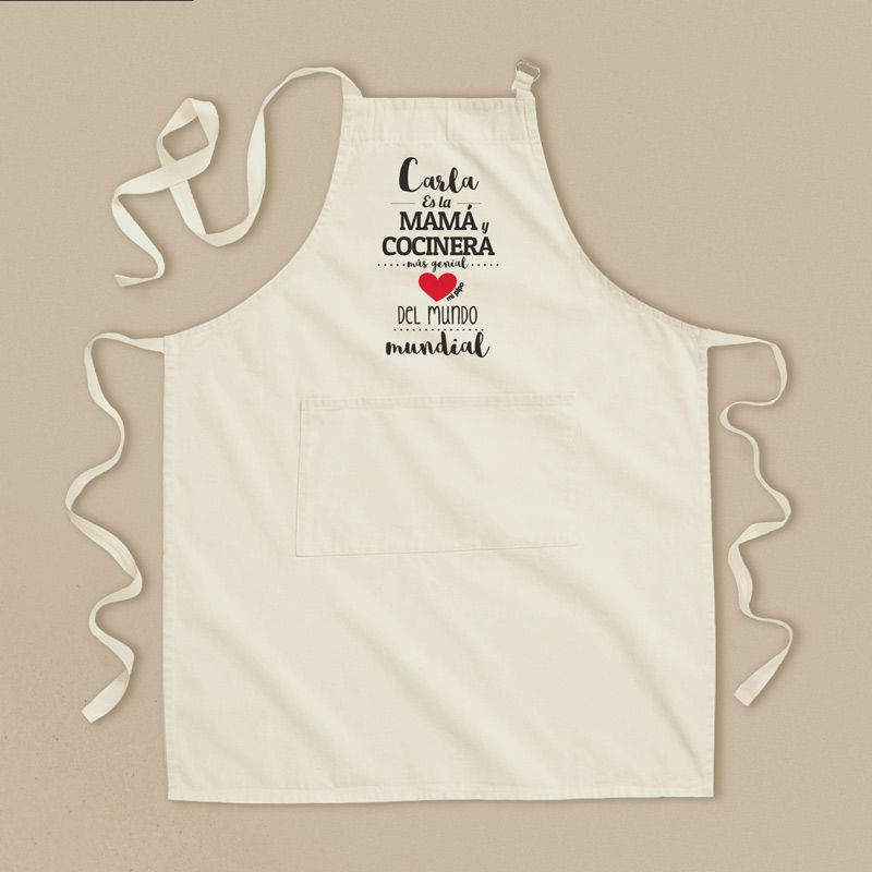 Delantal Algodón Premium Personalizado (Nombre) Eres la Mamá y Cocinera más genial del Mundo mundial