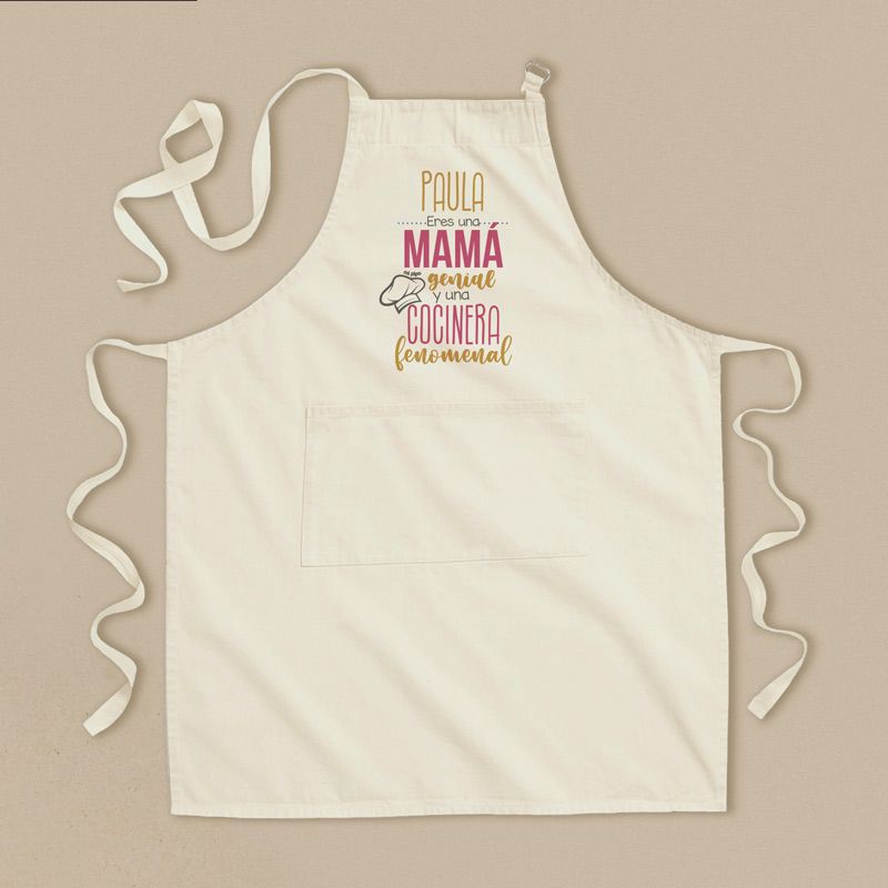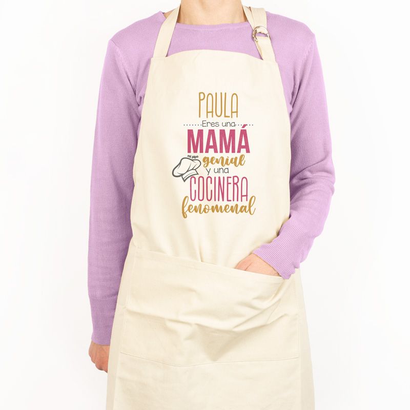 Delantal Algodón Premium Personalizado (Nombre) Es una Mamá genial y una Cocinera Fenomenal