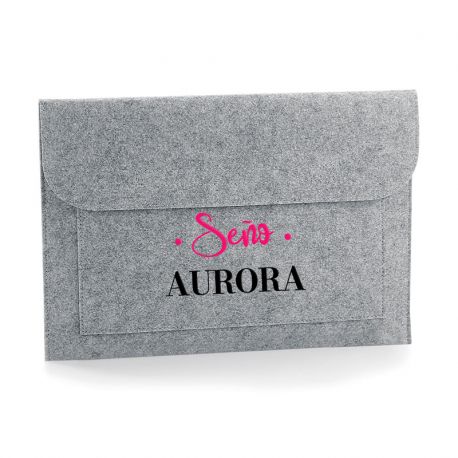 Funda para Portátil fieltro Gris Profe + Nombre personalizado bordados