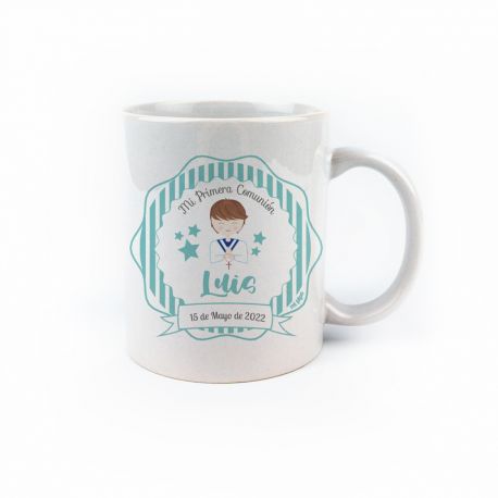Taza cerámica o plástico Comunión Menta personalizada Niño