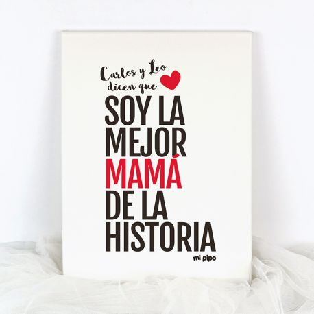 Lienzo Personalizado (Nombre hijo/s) dicen que soy la mejor Mamá de la historia
