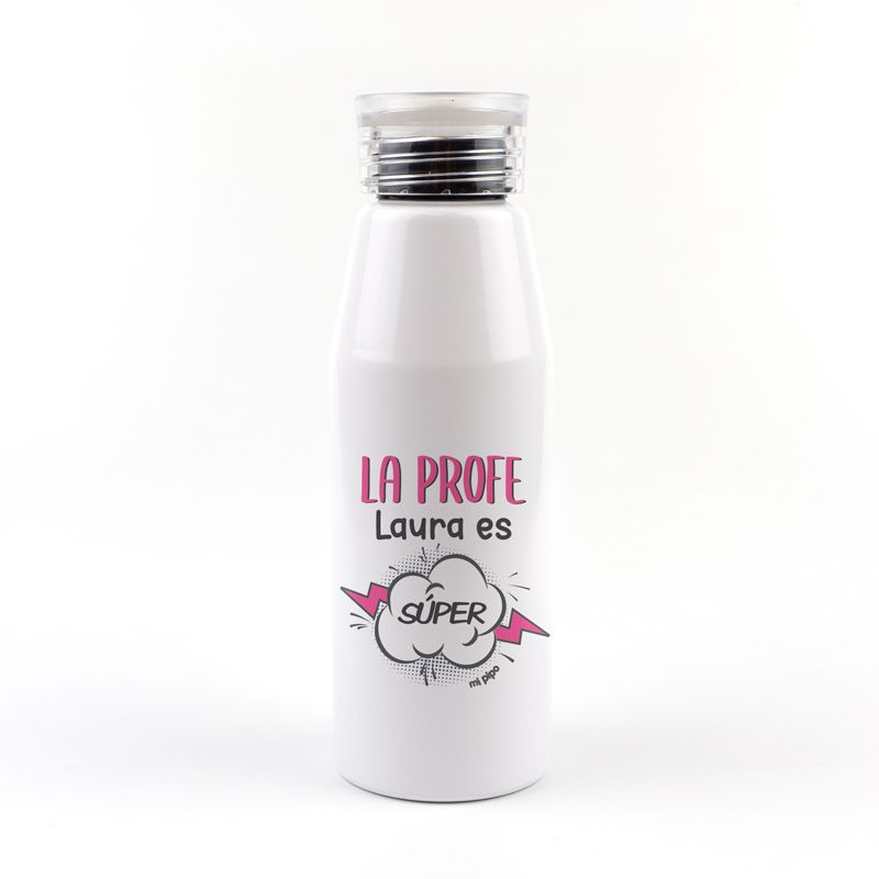 Botella Aluminio personalizada La PROFE (Nombre) es súper rosa