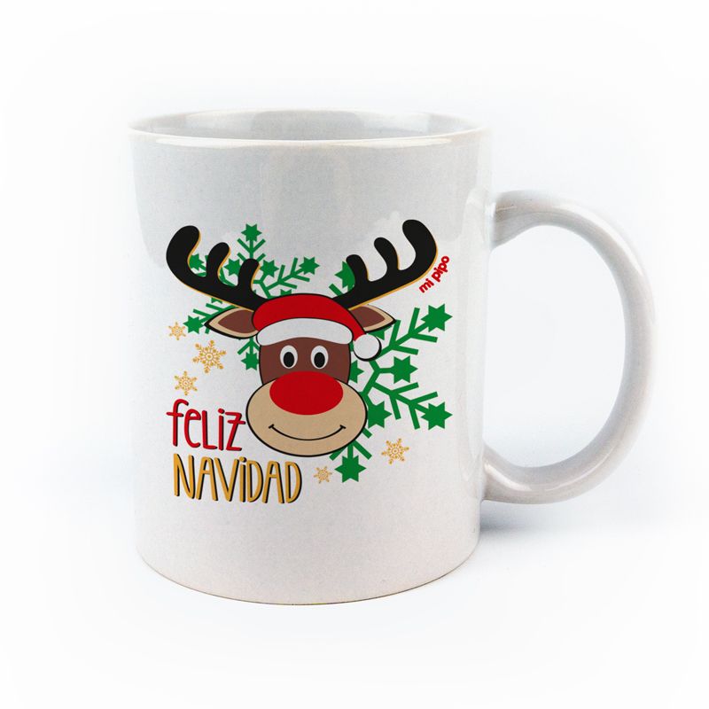 Taza cerámica o plástico Feliz Navidad Reno Rudolf