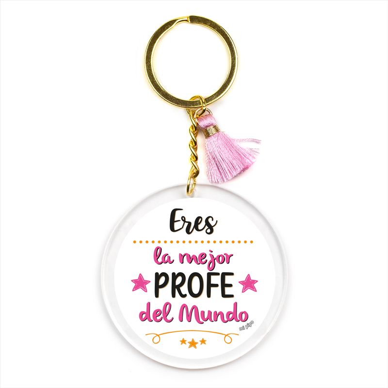 Llavero Metacrilato Eres la mejor Profe del mundo Rosa