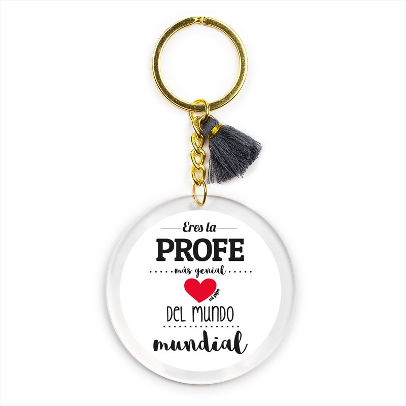 Llavero Metacrilato Eres la Profe más genial del mundo mundial Corazón rojo