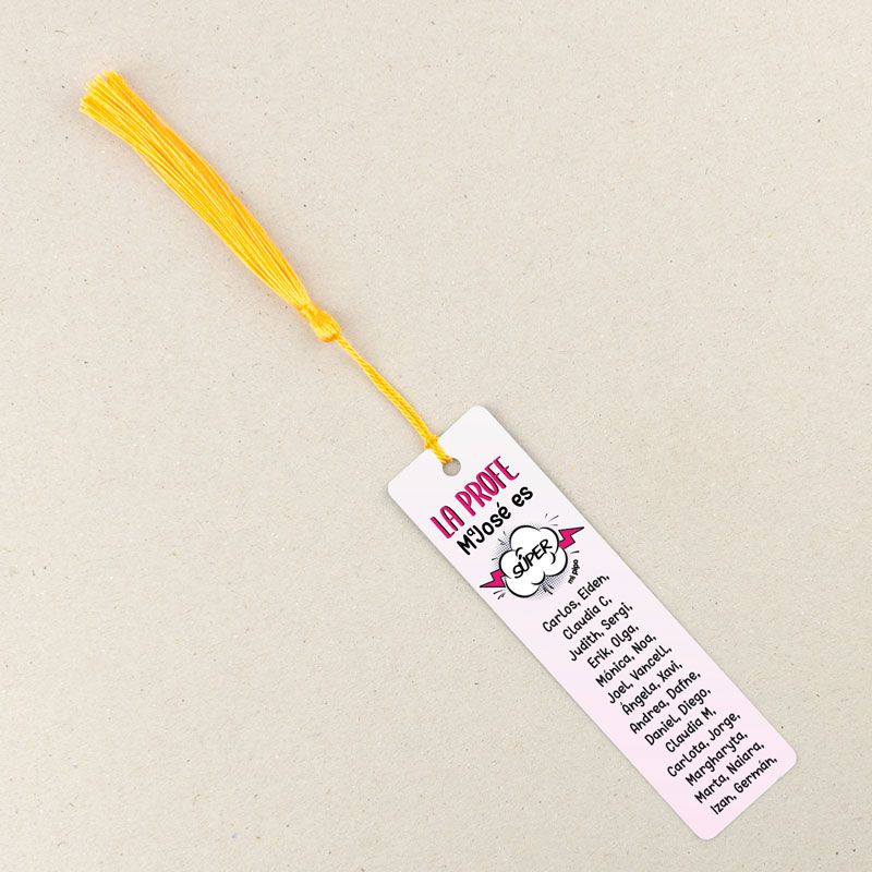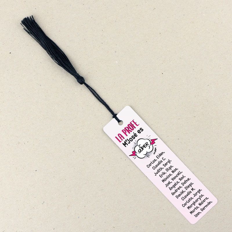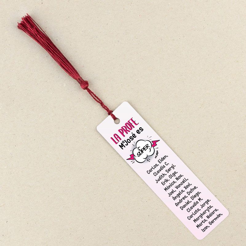 Marcapáginas Personalizado la Profe (nombre) es súper rosa (texto alumnos)