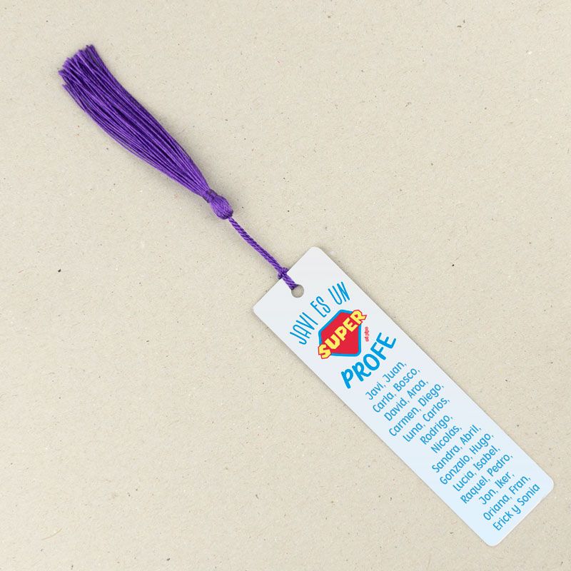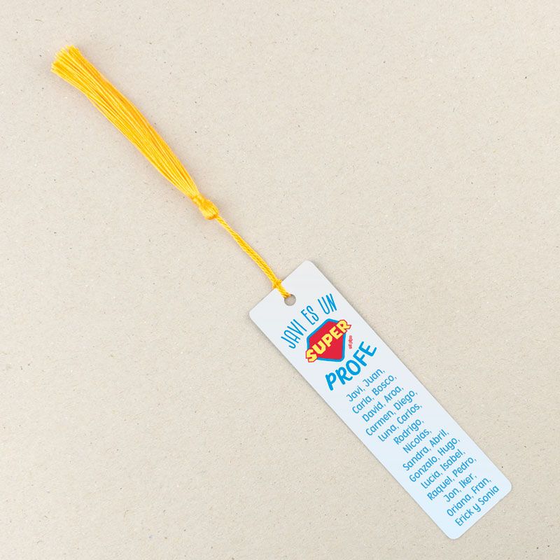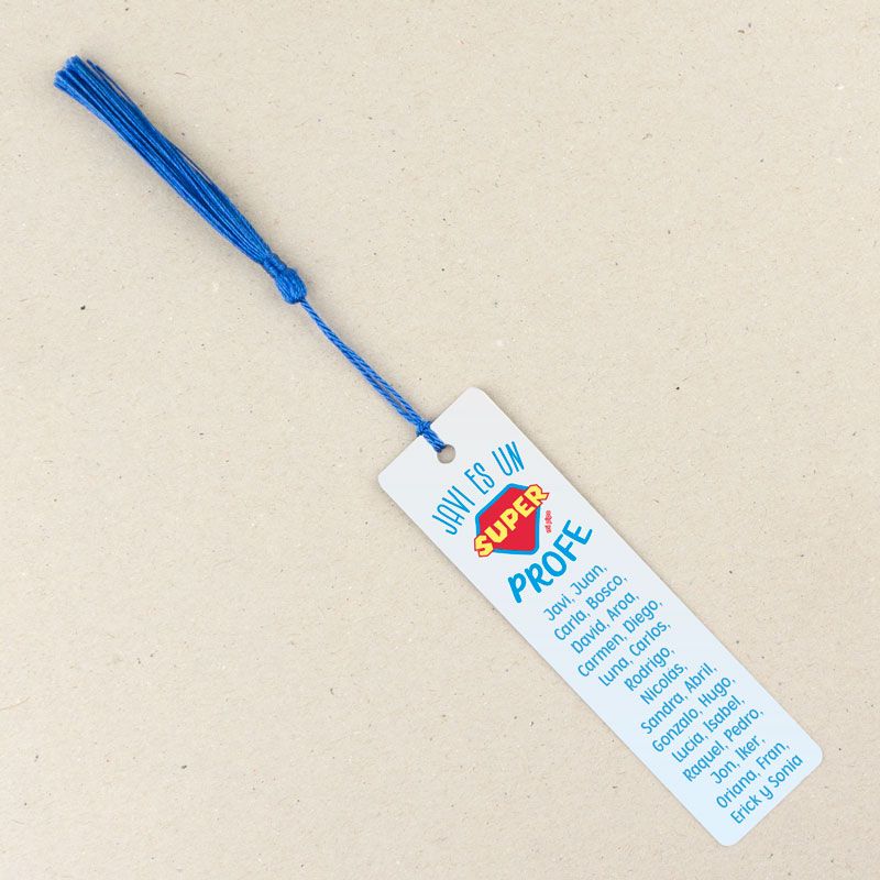 Marcapáginas Personalizado (nombre) es un súper Profe azul (texto alumnos)