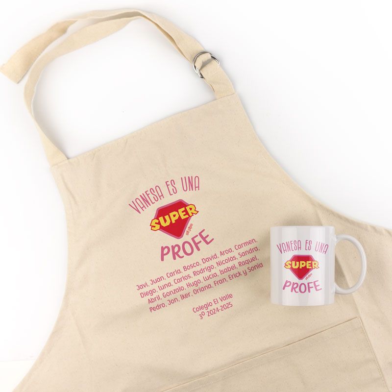 Pack Delantal Profe + Taza Personalizado Es una súper profe