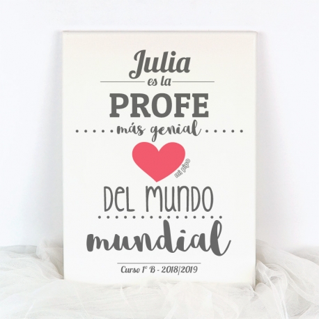 Lienzo Personalizado corazón (nombre) es la Profe más genial del mundo mundial (curso y año) Ver más grande