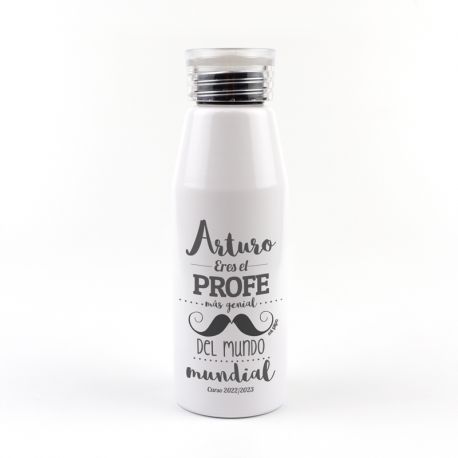 Botella Aluminio personalizada (Nombre) eres el PROFE mas genial del Mundo mundial Bigote