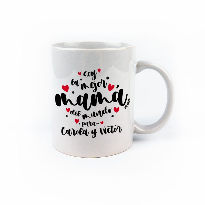 Taza cerámica o plástico Mamá Soy la mejor mamá del mundo para corazones lunares personalizada