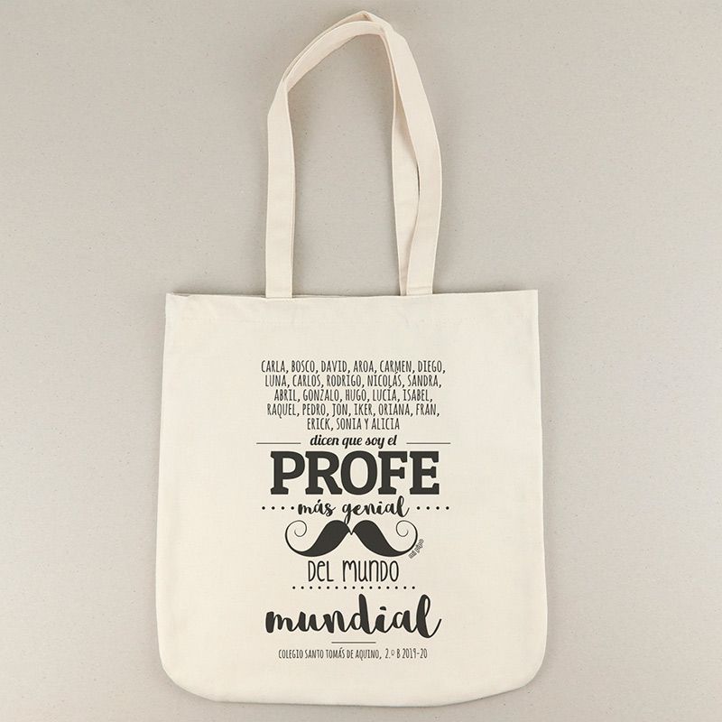 Bolso algodón orgánico personalizado (texto alumnos) Dicen que soy el profe más genial del mundo mundial Bigote