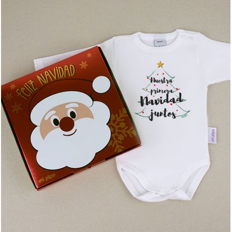 Babidu Body Navideño Nuestra primera Navidad juntos árbol silueta con cajita de regalo
