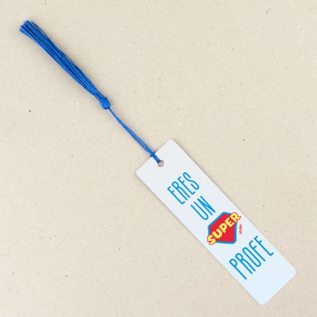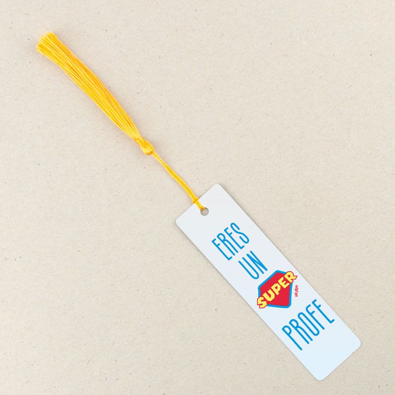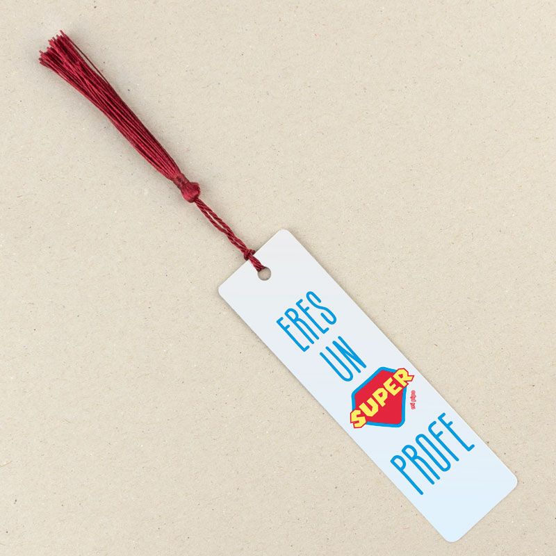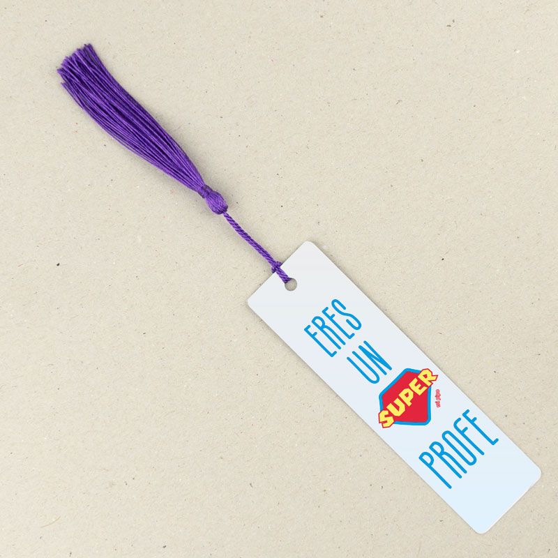 Marcapáginas de aluminio personalizado a una cara con borla en tonos variados según modelo.