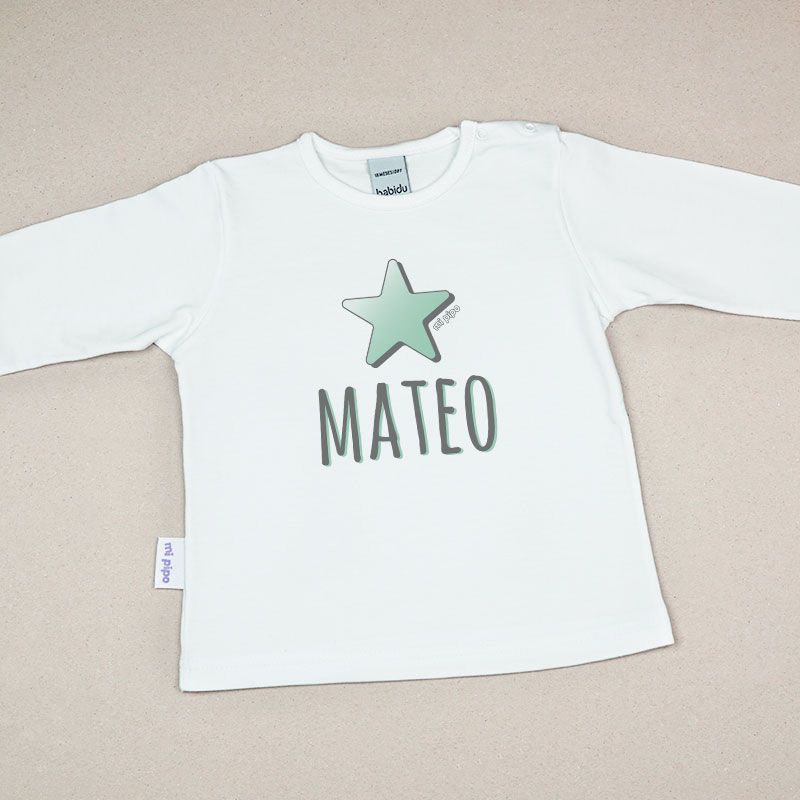 Camiseta o Sudadera Bebé y Niño/a Personalizada Estrella Menta