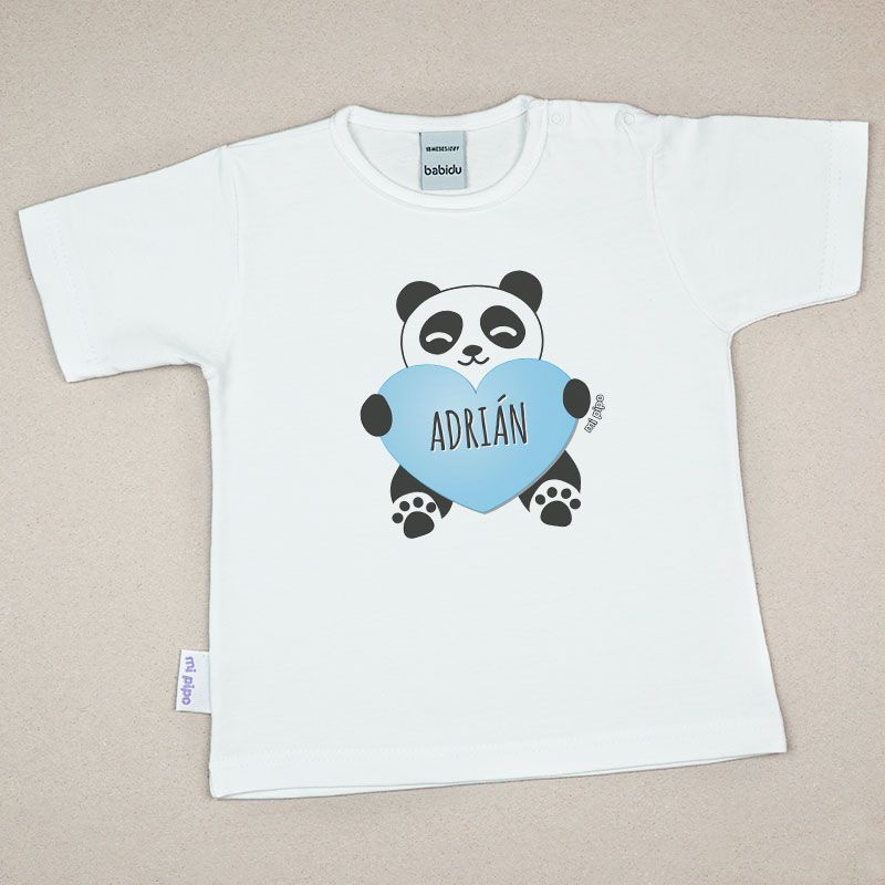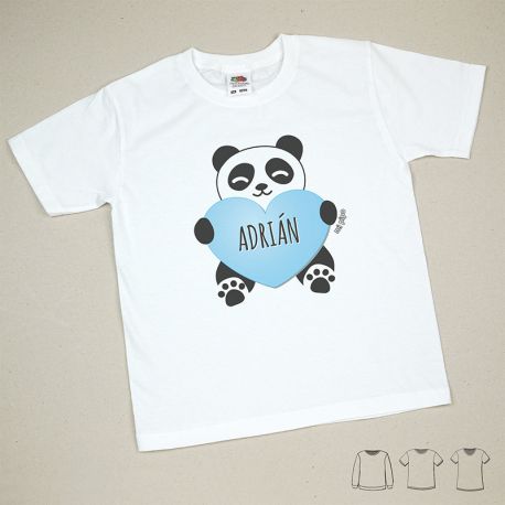 Camiseta o Sudadera Bebé y Niño/a Personalizada Panda Corazón Azul
