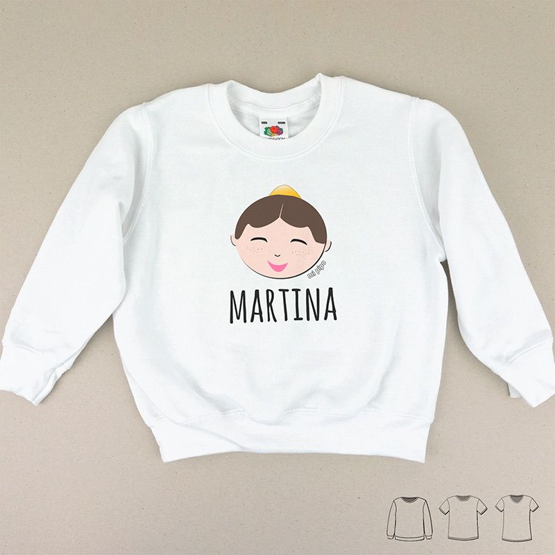 Puedes elegir entre camiseta de bebé, camiseta de niño, camiseta de niña o sudadera de niño/a.