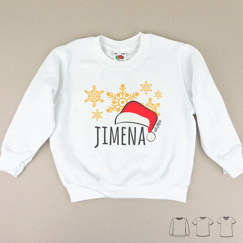 Camiseta o Sudadera Bebé y Niño/a Navideña personalizada gorro Papá Noel