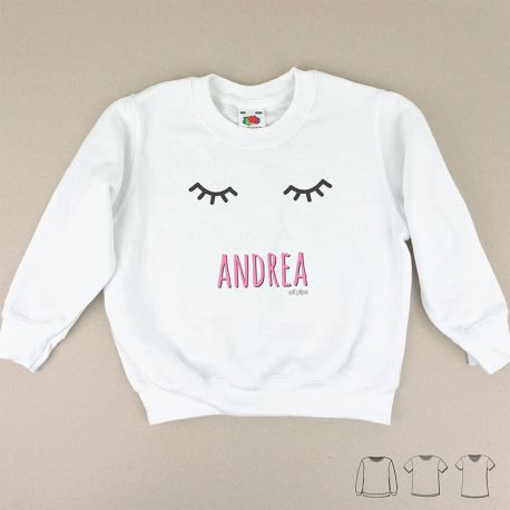 Camiseta o Sudadera Bebé y Niño/a Personalizada Pestañas Rosa