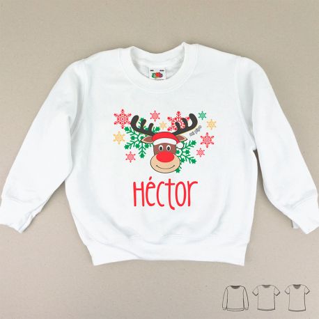 Camiseta o Sudadera Navideña Personalizada con Reno Rudolph
