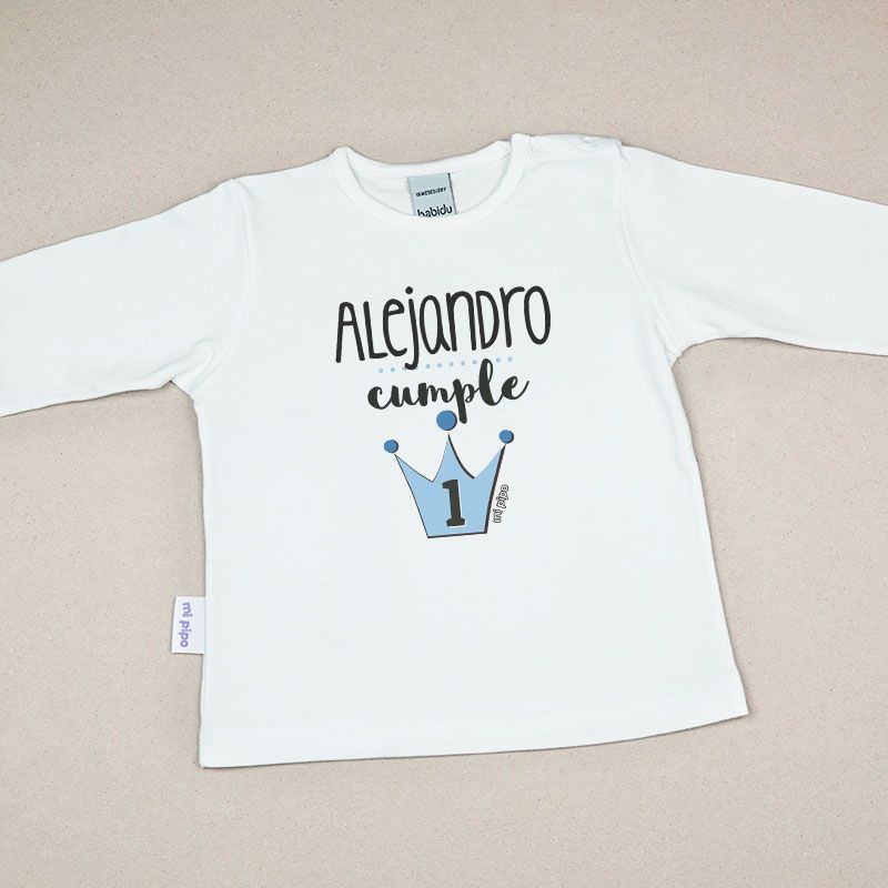 Camiseta o Sudadera Bebé y Niño/a Personalizada Cumpleaños Corona Azul