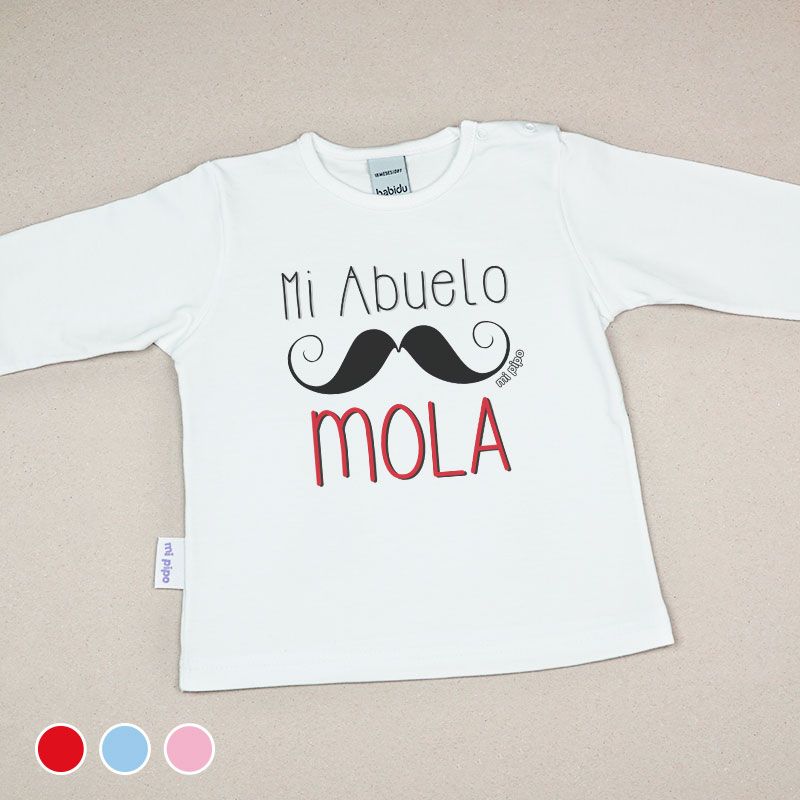 Camiseta o Sudadera Bebé y Niño/a Mi Abuelo Mola bigote Rojo, Azul o Rosa