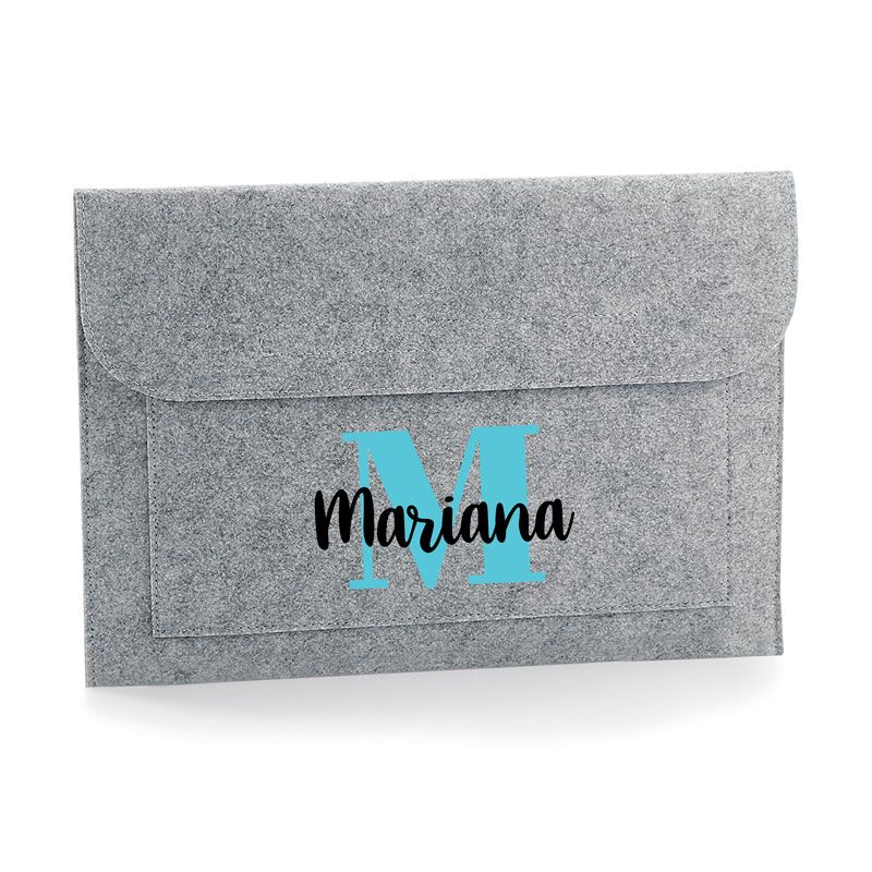 Funda Portátil Shopper fieltro Gris Inicial Color + Nombre