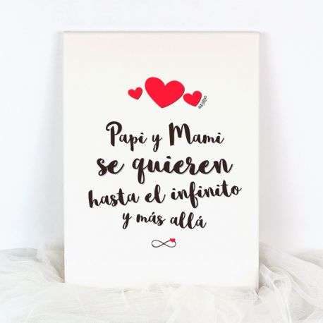 Lienzo Papi y Mami se quieren hasta el infinito y más allá Ver más grande