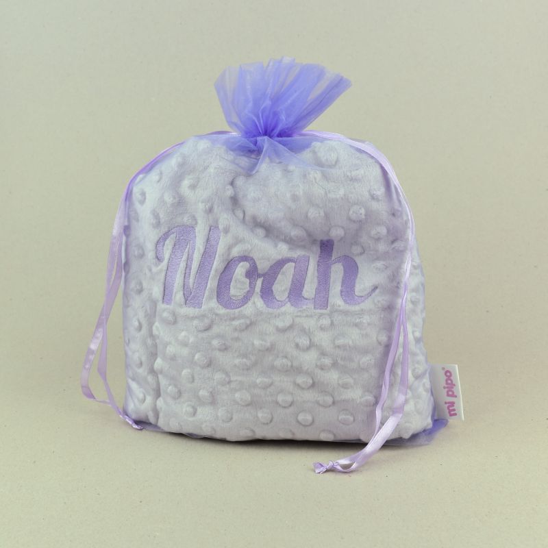 *La manta de la imagen está bordada con letra Peque en color Fucsia y dibujo Estrella Sonrisa en color Gris Antracita.