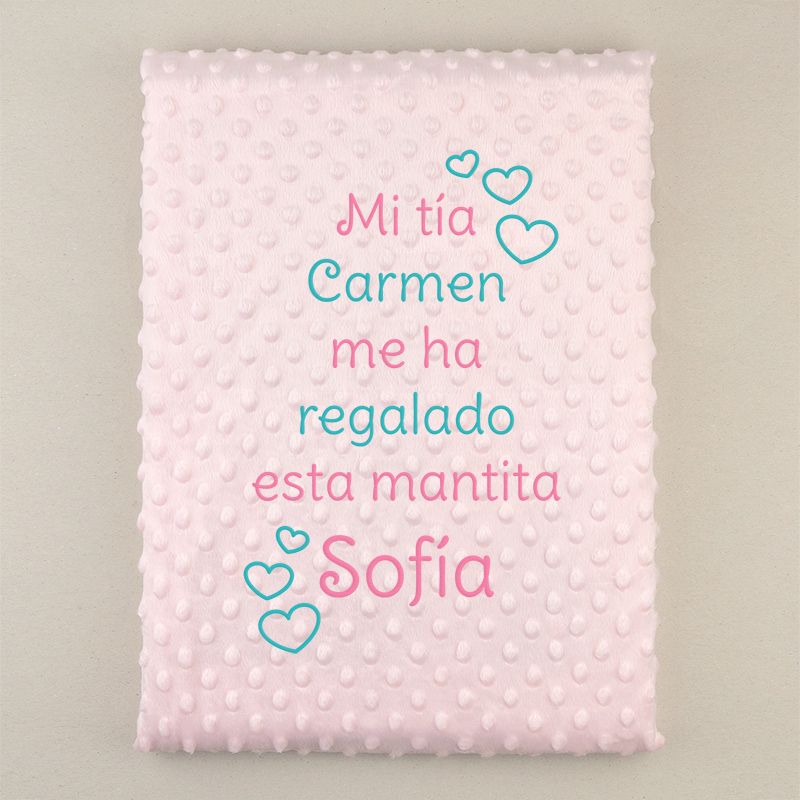 - Dispones de hasta 55 caracteres (contando espacios) para personalizar la manta. Las líneas se distribuirán de la forma más estética hasta un máximo de 7 líneas.