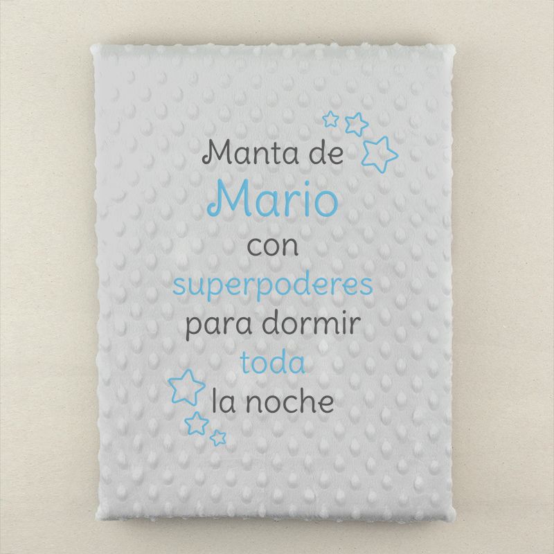 - Dispones de hasta 55 caracteres (contando espacios) para personalizar la manta. Las líneas se distribuirán de la forma más estética hasta un máximo de 7 líneas.