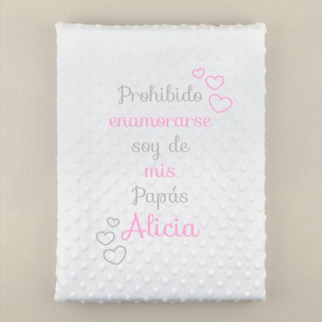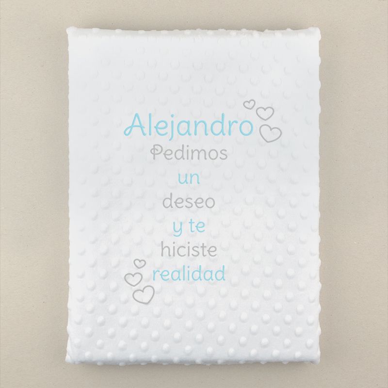 - Dispones de hasta 55 caracteres (contando espacios) para personalizar la manta. Las líneas se distribuirán de la forma más estética hasta un máximo de 7 líneas.