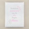 - Puedes elegir entre estos colores de bordado: azul y gris perla, rosa y gris perla, menta y gris perla