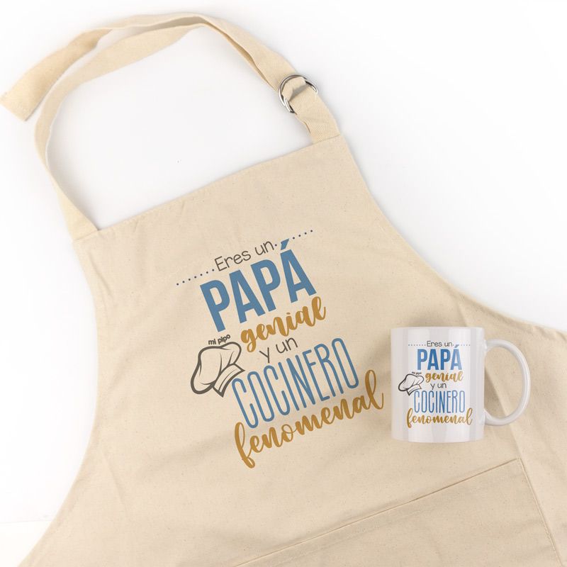 Pack Delantal Papá + Taza Divertido Eres un Papá genial y un Cocinero Fenomenal