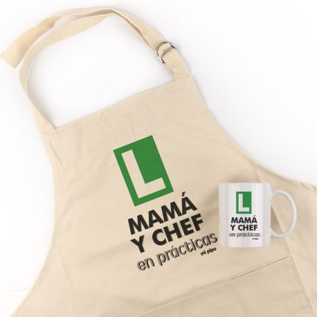 Pack Delantal Mamá + Taza Divertido Mamá y Chef en Prácticas