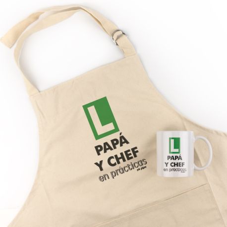 Pack Delantal Papá + Taza Divertido Papá y Chef en Prácticas