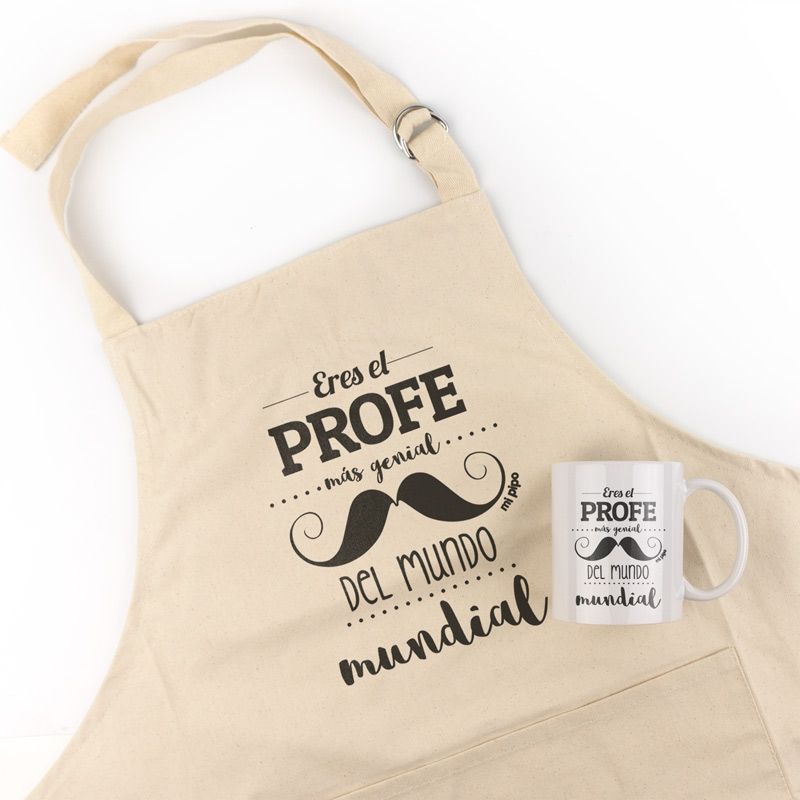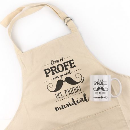 Pack Delantal Profe + Taza Divertido Eres el Profe más genial del Mundo mundial
