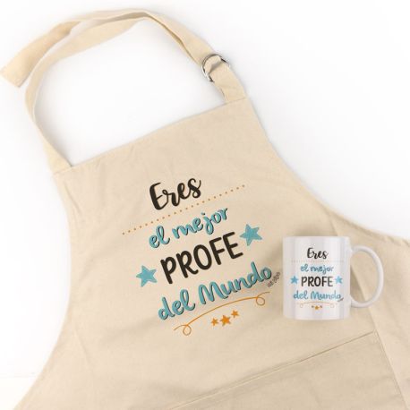 Pack Delantal Profe + Taza Divertido Eres el mejor profe del mundo