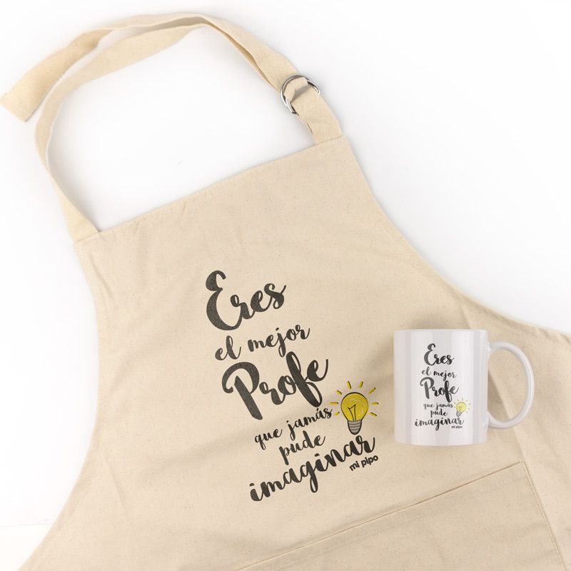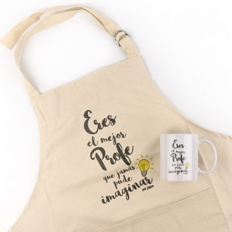 Pack Delantal Profe + Taza Divertido Eres el mejor profe que jamás puede imaginar