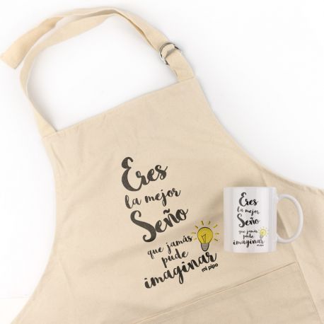 Pack Delantal Profe + Taza Divertido Eres la seño más genial que jamás pude imaginar