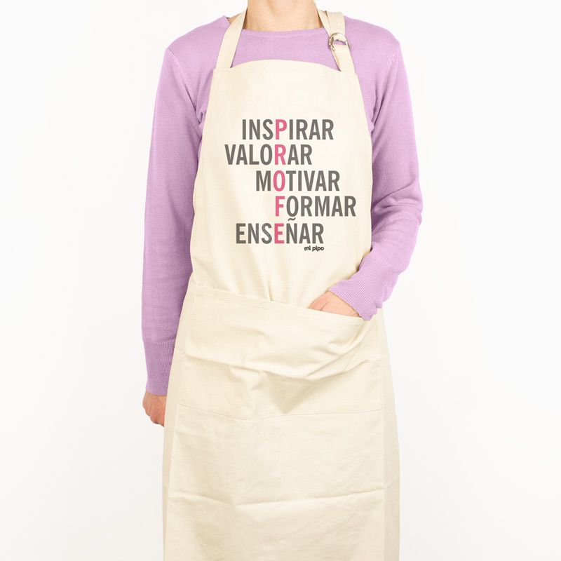 Delantal Profe Divertido Adjetivos Rosa Ver más grande