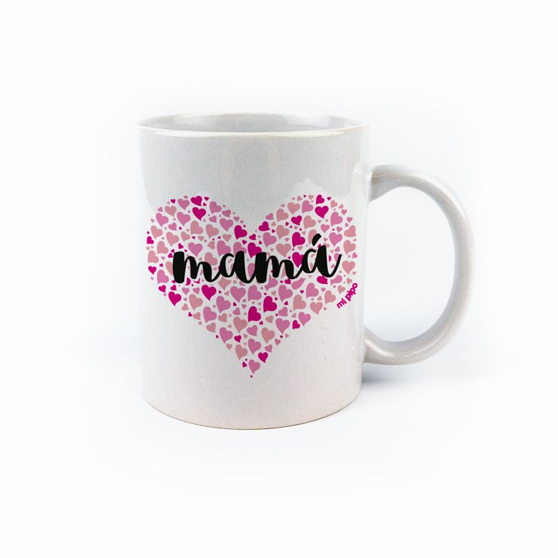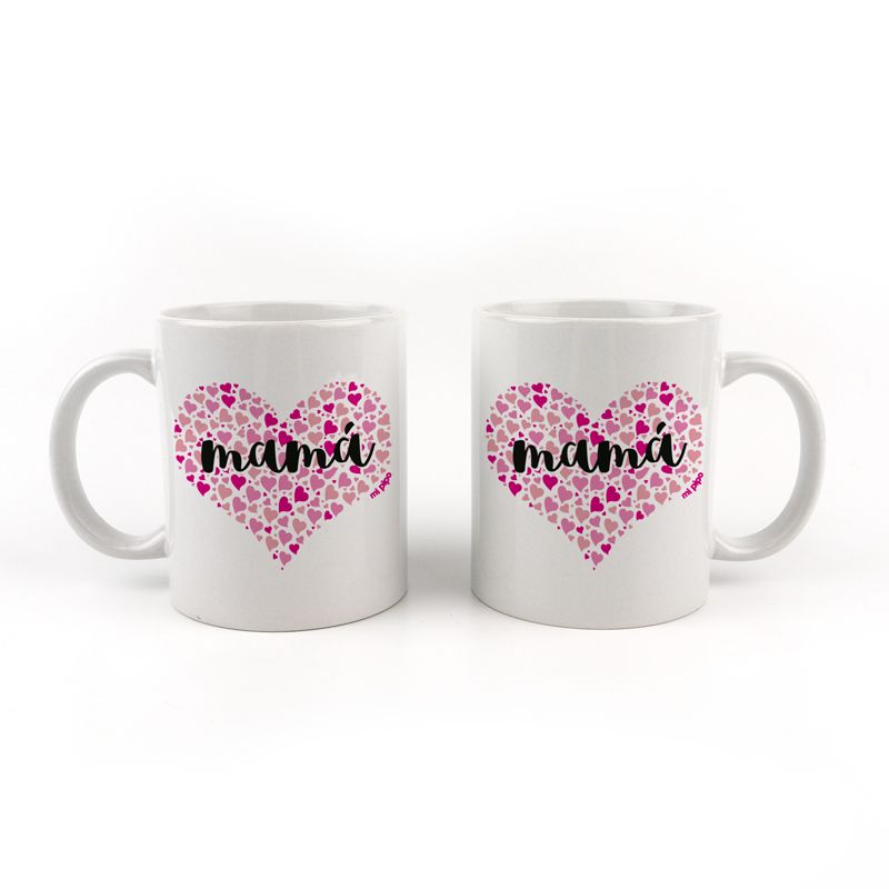 Taza cerámica o plástico Mamá corazón de corazones fucsia