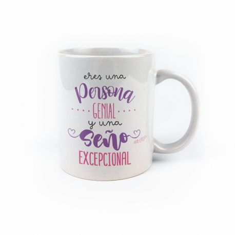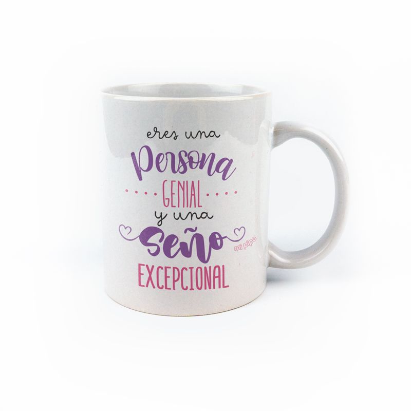 Taza cerámica o plástico Profe Eres una Persona genial y una Seño excepcional