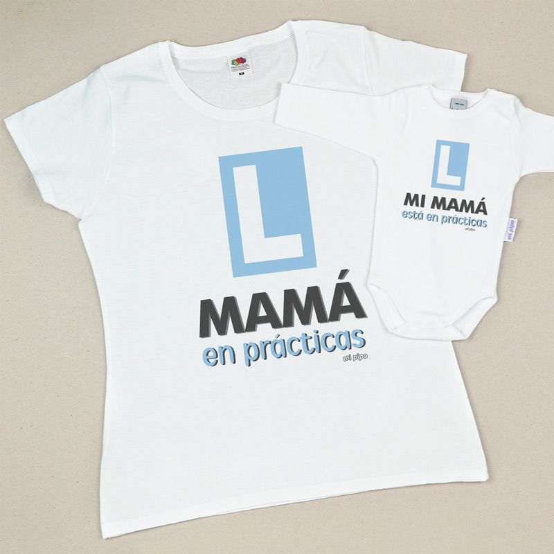 Pack 2 Prendas Mamá en prácticas / Mi Mamá está en prácticas Azul