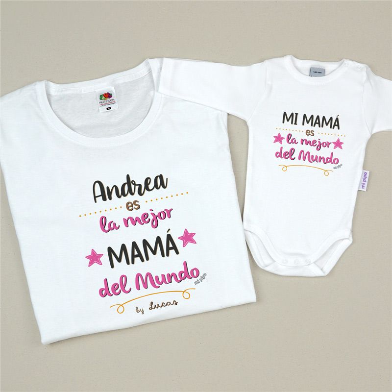 Pack 2 Prendas Personalizadas La mejor Mamá del mundo by nombre/s ROSA