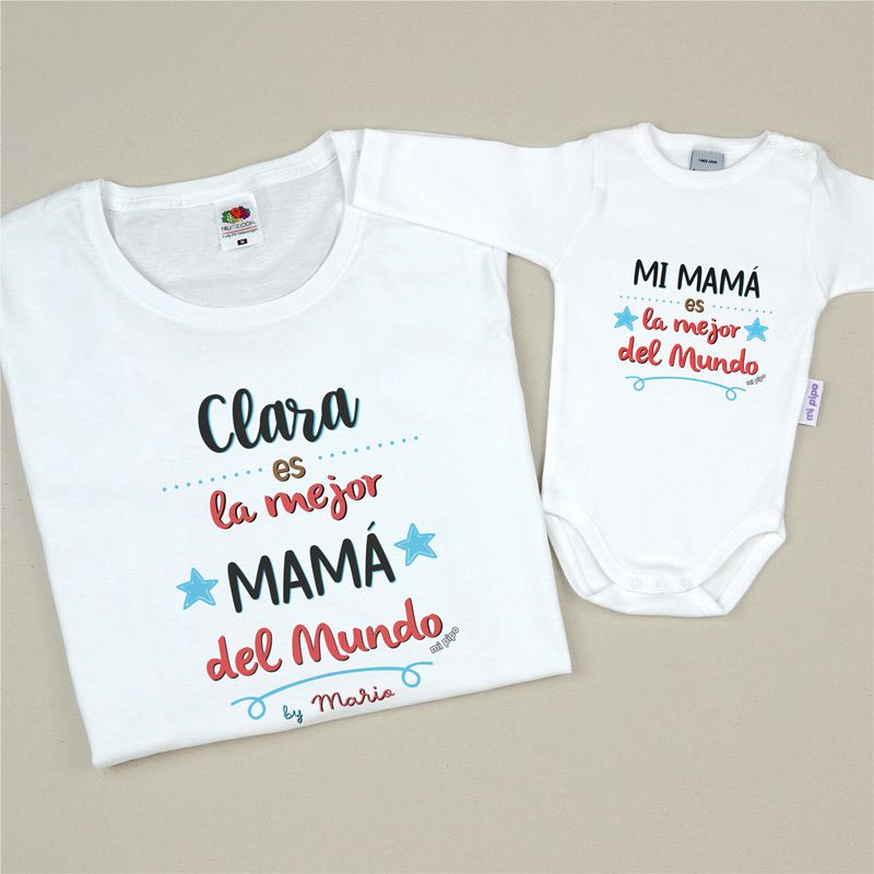 Pack 2 Prendas Personalizadas La mejor Mamá del mundo by nombre/s AZUL