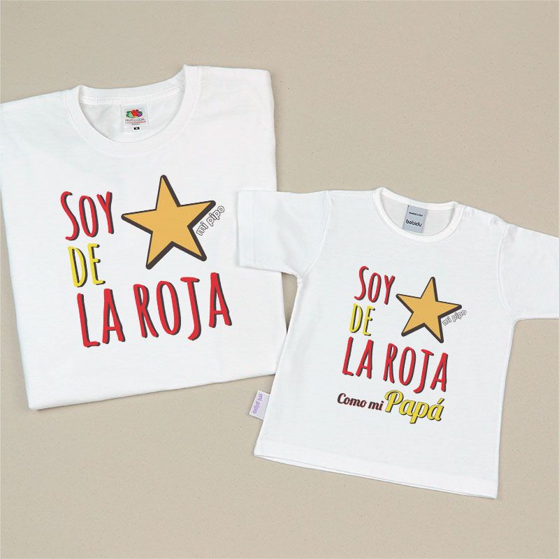 Pack 2 Prendas Camiseta o Sudadera Papá Soy de la Roja/Soy de la Roja como mi Papá (estrella)